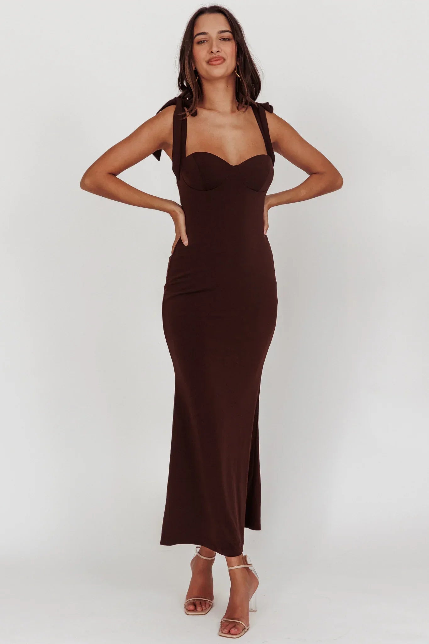 Heads will turn when you walk by in our gorgeous Rose Garden maxi dress. We are in love with its feminine, tied bow shoulders! Perfect for a garden wedding or a special event teamed with strappy, nude heels and a clutch for a dreamy look we are loving.